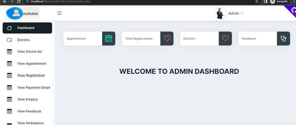 This project is a web based application designed for a charitable hospital, aimed at streamlining the hospital's operations and improving patient and member experiences. The system enables patients to easily register, book appointments with doctors from various departments, and reserve ambulance services online. Members can also register for the hospital and donate either online or offline. The project enhances the overall functionality of the hospital by providing a user-friendly platform for patient bookings and donations.